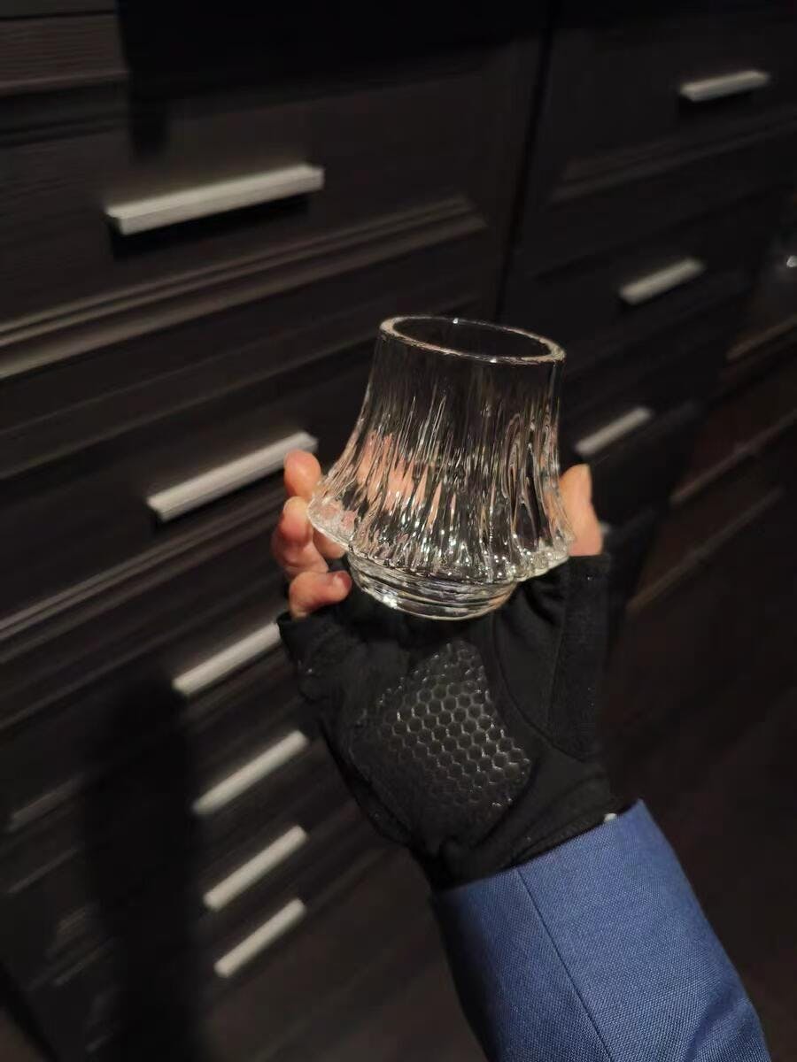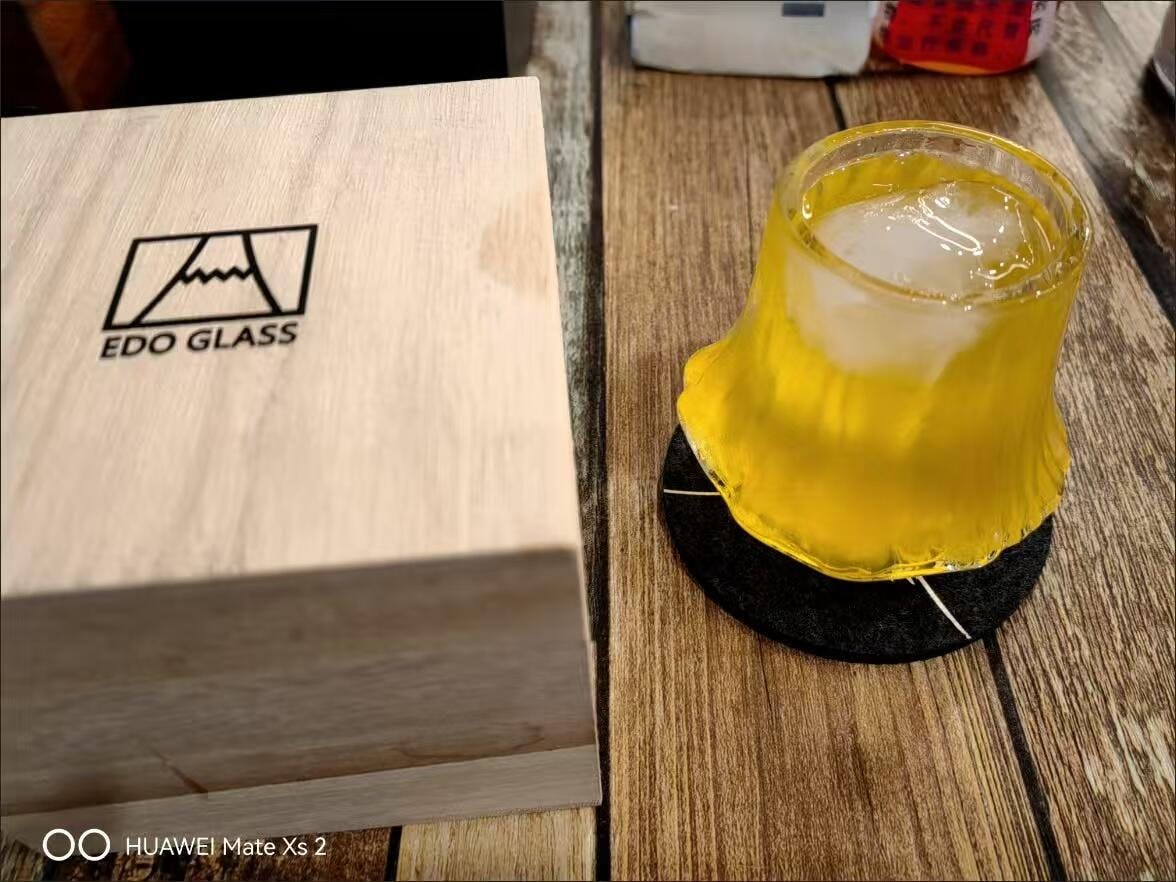 This Fuji whiskey glass draws inspiration from the crater of Japan's Mount Fuji, while fully retaining the functionality of a whiskey glass.
