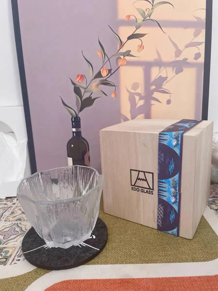 This quartz ornament is crafted from hand-blown Edo glass. Its shape is designed to recreate the quartz gemstone crystals found in the Kimpuzan mining area of Kofu, Japan.